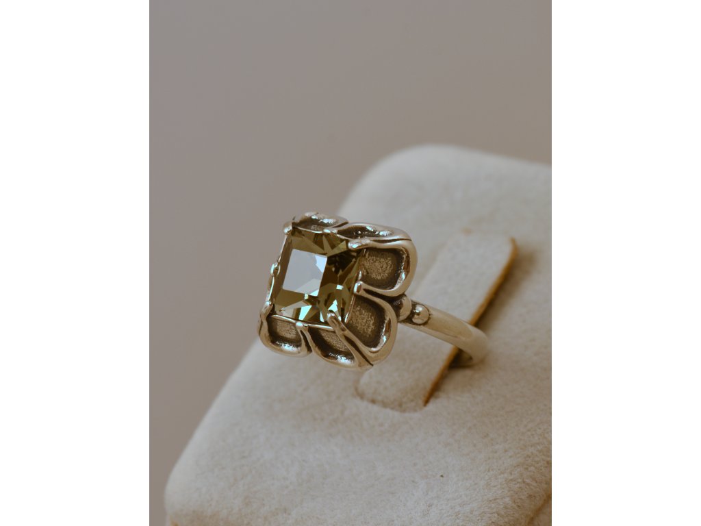 Stříbrný prsten s broušeným zirkonem v šedém odstínu. Zirkon o rozměru 8,40 x 8,40 mm. Olemování 14 x 14 mm, velikost prstenu 58. Izraelská kolekce.