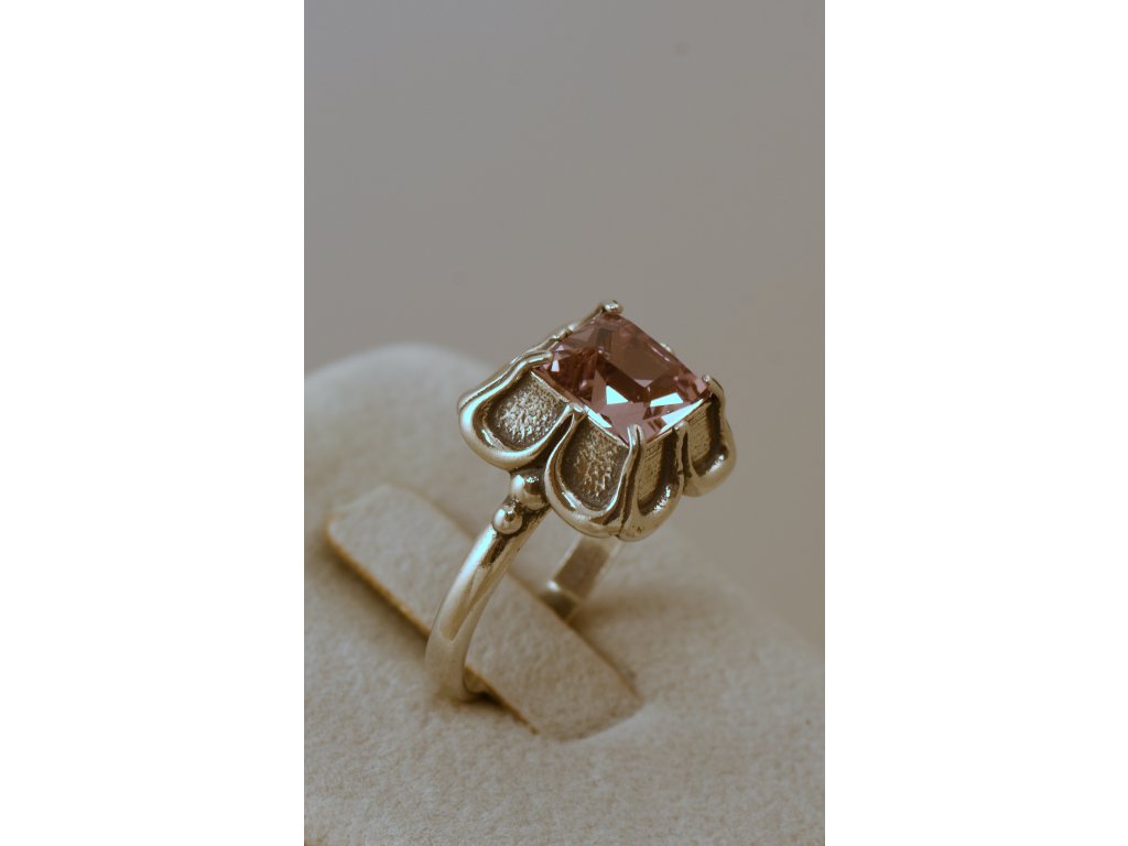 Stříbrný prsten s broušeným zirkonem v odstínu levandule. Zirkon o rozměru 8,40 x 8,40 mm. Olemování 14 x 14 mm, velikost prstenu 60. Izraelská kolekce.
