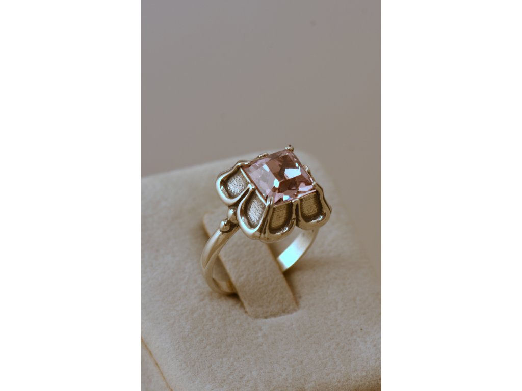 Stříbrný prsten s broušeným zirkonem v odstínu levandule. Zirkon o rozměru 8,40 x 8,40 mm. Olemování 14 x 14 mm, velikost prstenu 56. Izraelská kolekce.