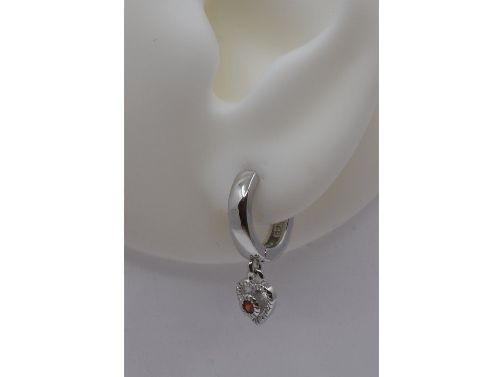 Dětské stříbrné kroužky se srdíčky, červené kamínky. Průměr vnější 12,50 mm, vnitřní 8,82 mm, rhodiované stříbro.
