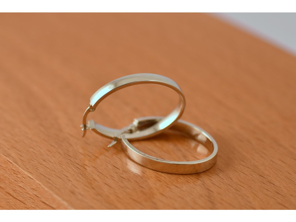 Dámské oválné náušnice z bílého zlata. Velikost oválu 3 x 2,3 cm, šířka 4 mm.