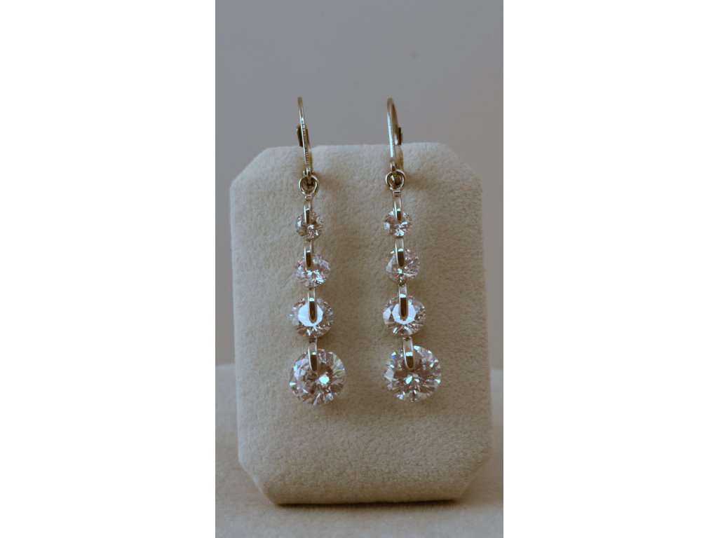 Náušnice z chirurgické oceli se zirkony, zapínání na patenty. Průměr zirkonů 4/5/6 a 8 mm. Celková délka náušnic 47,20 mm.