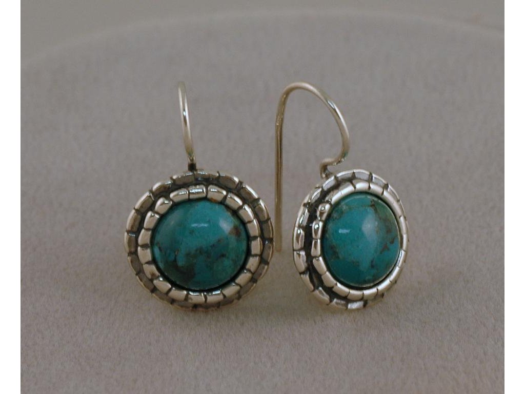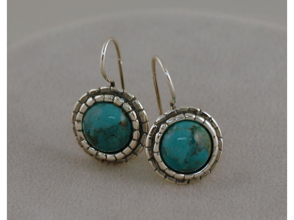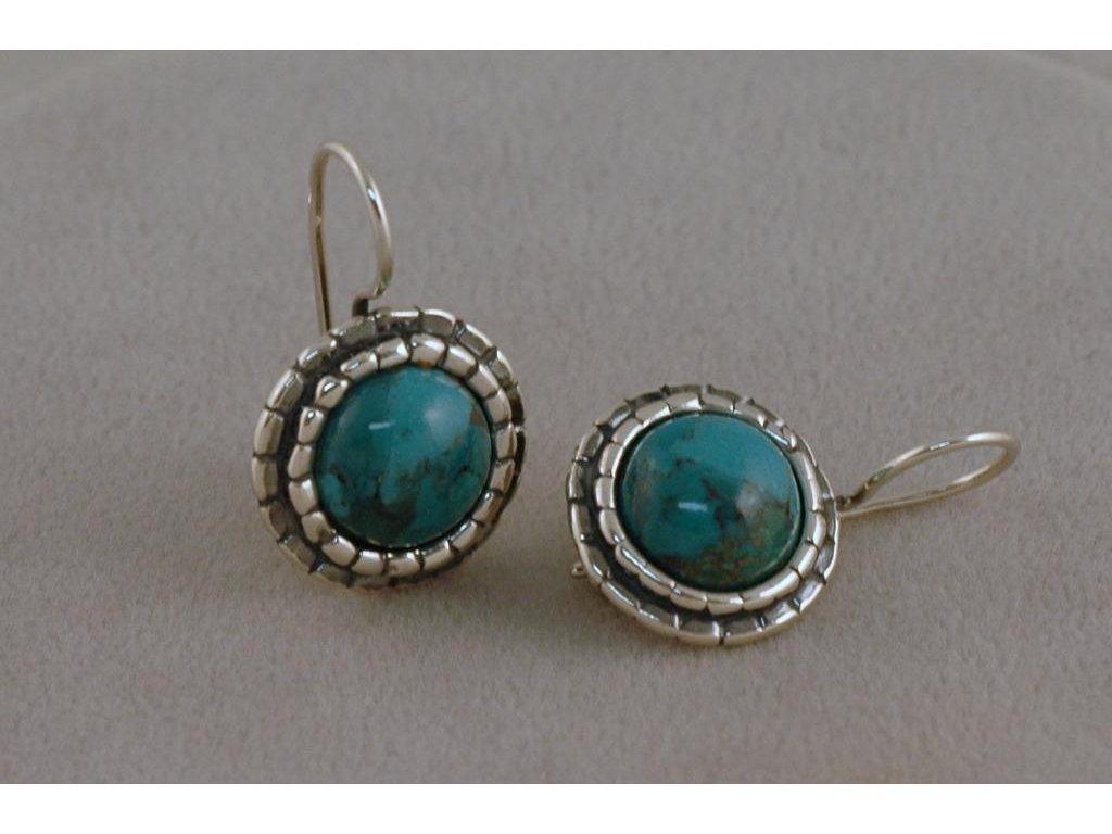 Originální stříbrné náušnice s tyrkysy, ruční izraelská práce.