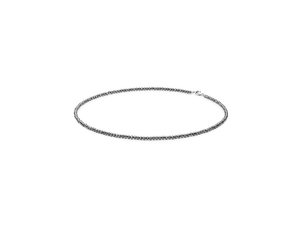 Náhrdelník z korálků broušeného syntetického minerálu, průměr korálků 3,15 mm, stříbrné zapínání, délka 44,5 cm.
