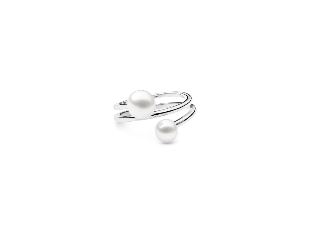 Stříbrný prsten s bílými perličkami o průměru 5,5-7 mm, rhodiované stříbro. Velikost prstenu 58.