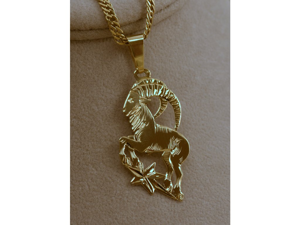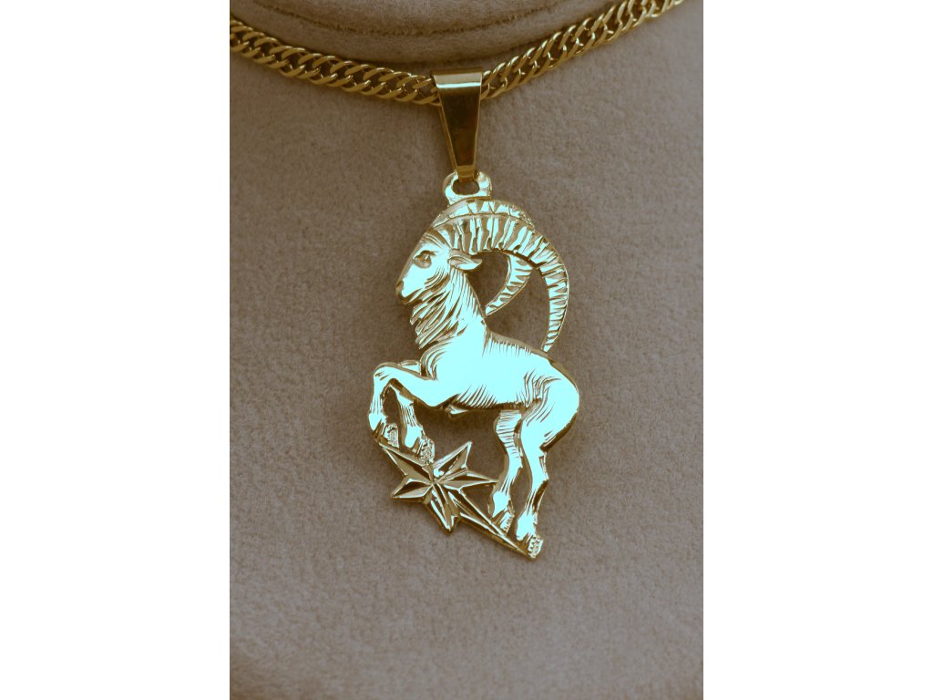 Přívěsek znamení kozoroha ze žlutého zlata. Rozměr přívěsku - délka přívěsku včetně závěsného očka 46 mm, šířka 19,22 mm.