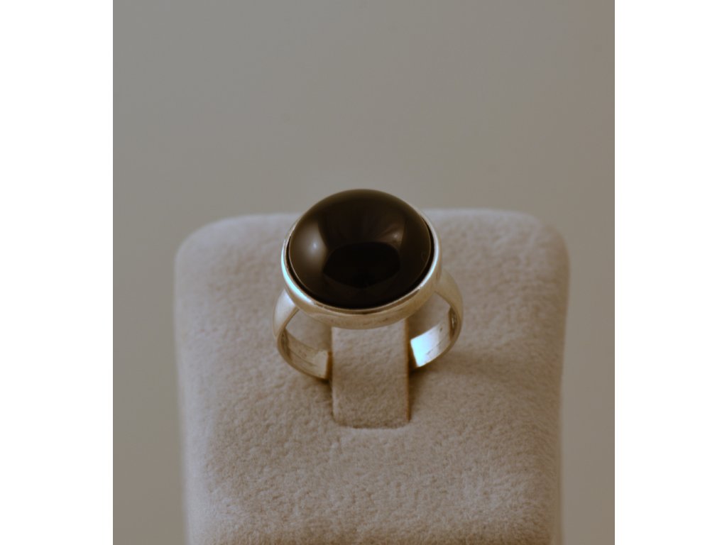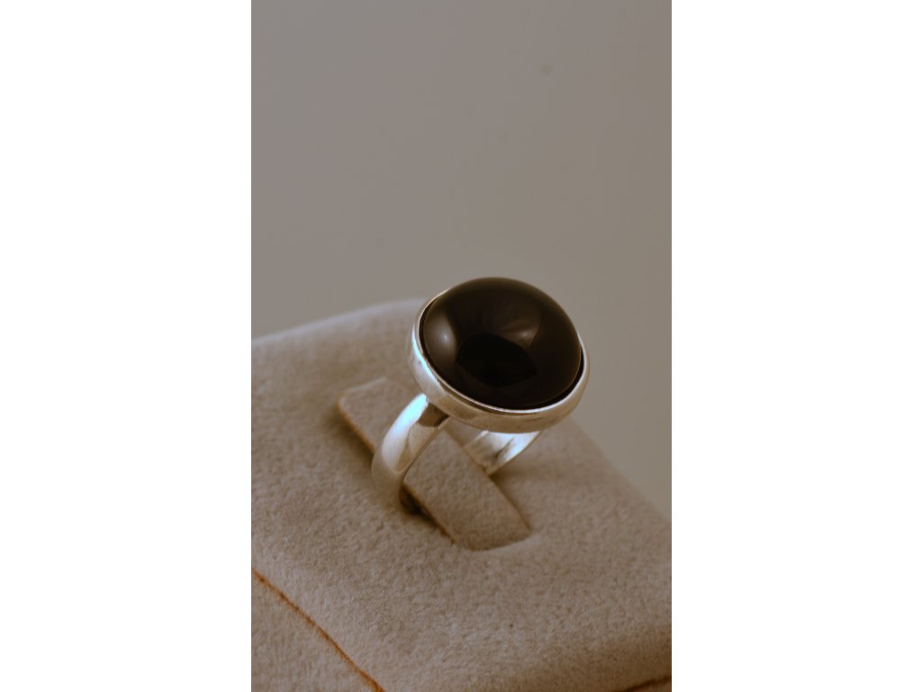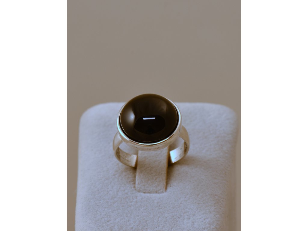 Originální stříbrný prsten s onyxem, průměr kamene 15 mm, velikost 54. Ruční izraelská práce.