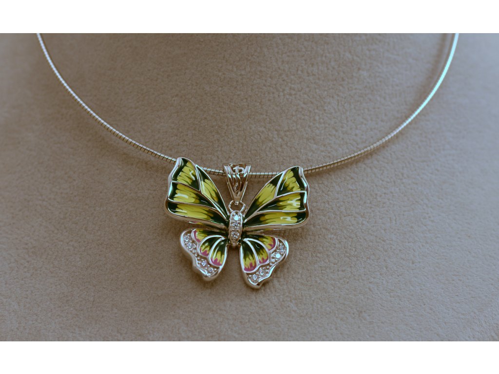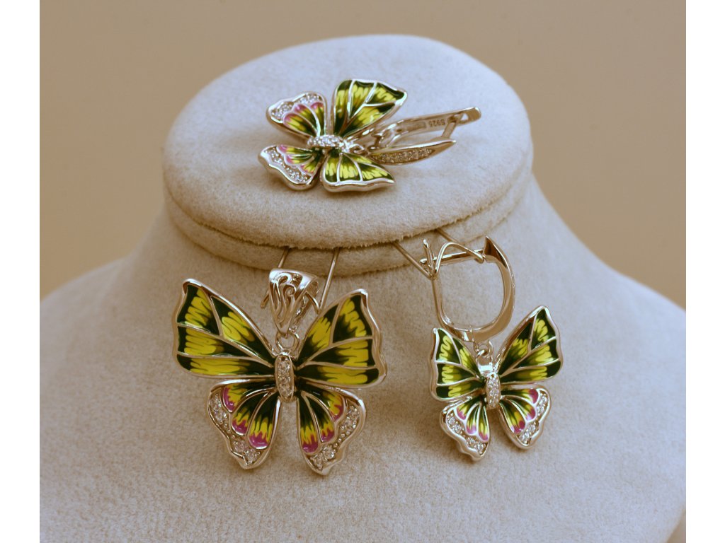 Krásná stříbrná souprava motýlů. Náušnice a přívěsek s barevným smaltem a zirkonky.
